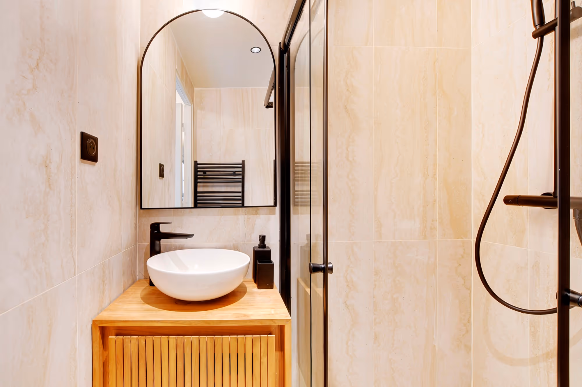 Situé au 1er étage d'un immeuble sans ascenseur, ce joli studio lumineux possède un design moderne, et dispose de tout le confort nécessaire pour accueillir deux personnes grâce à son aménagement moderne et optimal. \n\nIl s'ouvre sur une cuisine entièrement équipée et fonctionnelle, possédant de nombreux rangements. \nLe séjour lumineux bénéficie d'un canapé-lit confortable pour deux personnes, et d'une télévision connectée.\n\nLa salle de bain séparée est composée d'une douche à l'italienne et d'une toilette. \n\nCet appartement est particulièrement bien agencé pour facilité et optimiser votre séjour dans la capital. \n\nCe studio dispose de draps et de serviettes de qualité hôtelière ainsi que du wifi à haut débit.\n\nNous proposons des options d'arrivée simplifiées :\n\n- Vous pourrez accéder à votre appartement dès qu'il sera prêt. Nous sommes toujours disponibles par téléphone ou par chat si vous avez besoin de quoi que ce soit.\n- Nous recommandons également notre option de service de chauffeur premium. Notre chauffeur vous attendra à la sortie avec votre nom et vous conduira directement à l'appartement.
