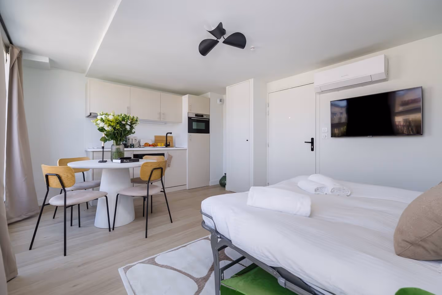 Ce bel appartement dispose d'une cuisine entièrement équipée, d'un lit queen et d'un canapé-lit confortable, de 1 salle de bain et de 1 toilette, du chauffage, de draps et serviettes de qualité ainsi que d'articles de toilette de luxe. Nous fournissons également une connexion Wi-Fi haut débit, une télévision à écran plat, une machine à café Nespresso.
